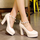 欧美罗马链子扣带防水台高跟鞋 2017春秋新款单鞋 时尚粗跟女鞋子