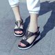 凉鞋女夏2017新款学生真皮中跟百搭平底厚底露趾亮片高跟坡跟凉鞋