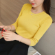 百搭圆领套头针织衫女修身短款2017新款韩版春装毛衣中袖打底衫秋
