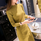 秋冬中长款毛衣女套头修身半高领超长款过膝针织连衣裙打底衫春秋