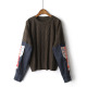 冬装新品女装 纯色百搭圆领拼接牛仔长袖毛衣女L@24-Y15-636