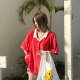 17韩国代购夏新宽松显瘦个性小翻领V领休闲运动百搭短袖T恤连衣裙