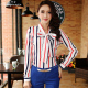 雪纺衫女2017春装新款韩版大码女装长袖条纹上衣蝴蝶结衬衫打底衫