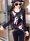 欧洲站春新款正版圆领显瘦网纱拼接真丝花色长袖T恤打底衫女大码