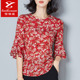 印花雪纺衫中袖春夏女装新款大码韩版宽松荷叶边上衣显瘦碎花小衫
