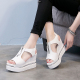 夏季17新款超高跟鱼嘴凉鞋女坡跟厚底防水台真皮松糕罗马凉鞋拉链