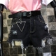 2017夏季修身显瘦毛边磨破洞做旧铆钉高腰牛仔短裤女热裤女