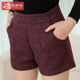 高腰毛呢短裤女春秋款2016新款女装打底裤春季皮百搭外穿大码靴裤