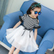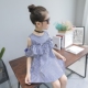 女童连衣裙 2017新款夏装韩版时尚条纹短袖露肩连衣裙 儿童裙子