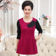 妈妈装春装长袖T恤中老年人针织衫外套中年女装秋装假两件套上衣