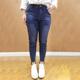 大码百分百春季胖mm新款女装时尚不规则裤脚抓纹修身九分裤牛仔裤