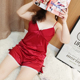 2017春夏新款胖mm时尚性感丝绸吊带睡衣套装蕾丝边开叉短裤两件套