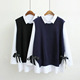 兰兰大码女装2017春装新胖mm加肥加大潮白色衬衫毛线背心两件套Z