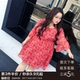 大码女装韩版宽松收腰显瘦小碎花系带荷叶袖中长款雪纺连衣裙