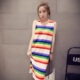 2017新款春夏时尚两件套针织吊带背心条纹高腰开叉显瘦长裙女套装