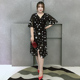 现货春夏季大码连衣裙深v领开叉印花时尚百搭雪纺裙加肥加大4217