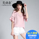 美动态微胖妹妹夏装套装2017新款加大码女装T恤+胖mm短裤 两件套