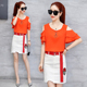 2017夏季新款春装时尚淑女气质甜美蕾丝雪纺衫女装套装短袖上衣潮
