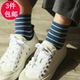 17春季新款高端定制韩版简约百搭细条纹夹花棉高罗口棉质女士短袜