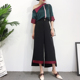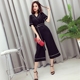 17夏季新款韩版时尚女装收腰显瘦西装领短袖拼线条连体裤阔腿裤潮
