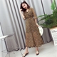 2017韩版新品时尚女交叉V领喇叭袖孔雀羽毛印花雪纺连体阔腿裤