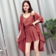 2017春夏新款睡衣七件套女冰丝长袖韩版吊带开衫丝绸家居服套装潮