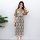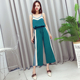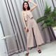 2017夏装新品时尚女装V领撞色吊带背心+松紧腰条纹边阔腿裤套装潮