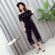 17新品韩版时尚女一字领露肩压褶荷叶边收腰系带雪纺连体裤阔腿裤