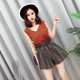 17新款韩版时尚女装一字领露肩格子抹胸连体裤收腰显瘦阔腿裤子潮
