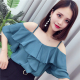 17夏季新款韩版女装性感一字领露肩荷叶边吊带雪纺衫纯色百搭上衣