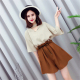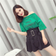 2017新款韩版气质女挂脖V领纯色套头上衣+高腰阔腿短裤套装配腰带