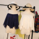 17新款韩版气质女条纹边勋章胸针开衫外套+收腰抹胸连体短裤套装