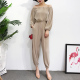 17新款韩版时尚气质一字领露肩灯笼袖收腰显瘦百褶休闲连体裤长裤