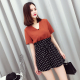 17夏季新款韩版气质女V领短袖套头上衣+高腰系带波点阔腿短裤套装