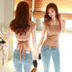 秋冬长袖打底衫女上衣黑色t恤韩版修身显瘦性感绑带紧身外穿衣服