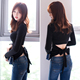 露腰绑带蝴蝶结性感长袖T恤女时尚修身显瘦黑色t恤上衣女秋装韩版