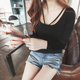 性感女装夜店吊带背心女夏短款打底衫显瘦外穿黑色低胸V领上衣
