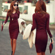 秋冬女装性感包臀V领中长款长袖连衣裙修身显瘦针织紧身一步裙潮
