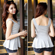 荷叶边纽扣工字吊带背心春装性感显胸短款打底衫修身露背上衣短裙