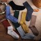 四双礼盒装 秋冬复古纯色羊毛中筒女袜 基础款保暖袜 森系堆堆袜