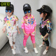 潮女童套装 新款春装儿童韩版碎花拉链衫哈伦裤2件套童装套装8166