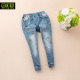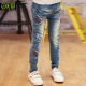 中大童牛仔裤 2017春装刺绣卡通女童休闲牛仔裤儿童修身长裤子061