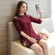 秋季女装绣花时尚圆领长袖针织衫女套头毛衣中长款连衣裙打底衫