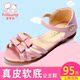 富罗迷女童凉鞋夏款女真皮平底童鞋学生鱼嘴韩版儿童公主粉水晶鞋