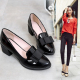 2017春新款中跟尖头漆皮蝴蝶结浅口英伦风女单鞋粗跟工作鞋小皮鞋