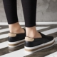 韩版黑色一脚蹬厚底懒人鞋女鞋学生休闲平跟松糕乐福鞋百搭帆布鞋