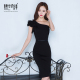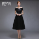 宴会晚礼服2017新款春季韩式黑色一字肩公司年会主持人礼服女短款