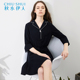 秋水伊人2017春装新品女装腰带西装领七分袖连衣裙
