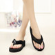 夏季女士凉拖鞋厚底防滑沙滩毛巾布大码人字拖时尚休闲增高夹脚拖