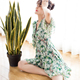 2017新款韩版性感碎花v领喇叭袖七分袖收腰显瘦中长款雪纺连衣裙